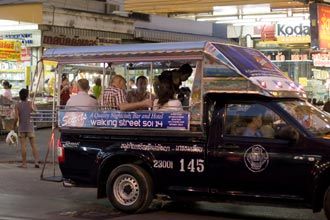 This is a Baht Bus. You pay a few cents and hop on. They travel all the way around Pattaya so it doesn't really matter which one you catch, you'll always end up close to home eventually. As we were riding one of these, one of the Lady boys decided to show Lucy her equipment.