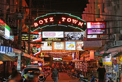 We stumbled in to this area while we were looking for food. I think it's called Soi Pattayaland, but everyone just refers to it as Soi Boyz Town. This is like walking street except that the girls on stage in the GoGos are replaced by young boys. We went in a small GoGo for a drink but Lucy gets a bit shy. It was reminiscent of a night out with Joseph.