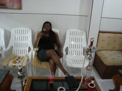 Our best discovery was the shisha. It's a flavoured tobacco smoked through a water pipe and one of our favourite pastimes in Dubai. We were very surprised and happy to find it here. The staff were amazing. The owner was from Pakistan, the head waiter was from India, the shisha guy was from Burma and there were a couple of Thai waitresses. Every single one of them spoke Thai, Hindi, Russian, German, Japanese and English and the owner spoke Italian as well. We were very impressed. We started off almost every night here.