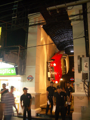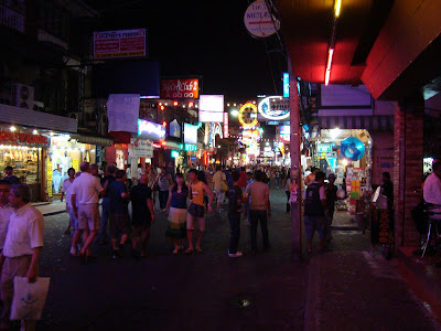 It wasn't the greatest hotel, the rooms were pretty clean except for a couple of long hairs in the bed and a pretty filthy bedspread (we had a good idea were the stains came from). Good thing we had purchased a new one while we were in Khon Kean. We thought we would have a bit of a nap and a quick shower before going out to explore. Night and day is an understatement for what we saw. I guess the sign across from our hotel saying "Lucifer" should have tipped us off.